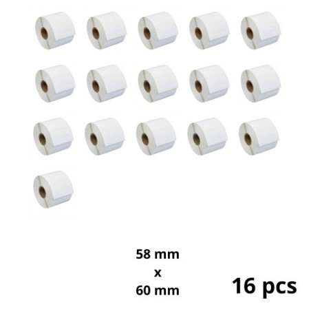 Zebra 58mm x 60mm termopaberist etiketid 25 mm südamikuga, tootja Dore, 16 tk