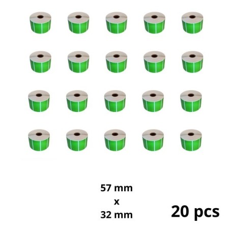 Mõõtmed: 57x32mm, 1500 etiketti, südamik - 25 mm.