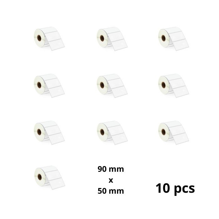 Zebra 90mm x 50mm lämpöpaperitarrat 25 mm ytimellä, valmistaja Dore, 10 kpl
