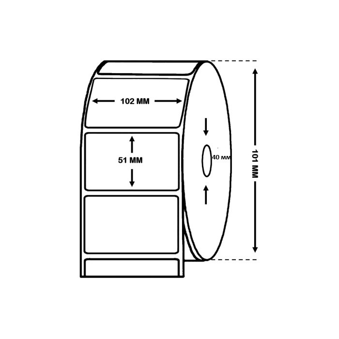 Размер: 102x51mm, 610 этикеток, втулка - 40 мм.